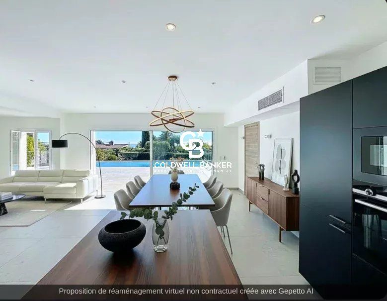 De plain-pied, la villa s’articule autour d’une magnifique pièce à vivre baignée de lumière, prolongée par de larges baies vitrées donnant sur la piscine et le jardin soigneusement arboré. La cuisine design et entièrement équipée, ouverte sur le séjour, crée un espace convivial idéal pour recevoir en toute élégance.